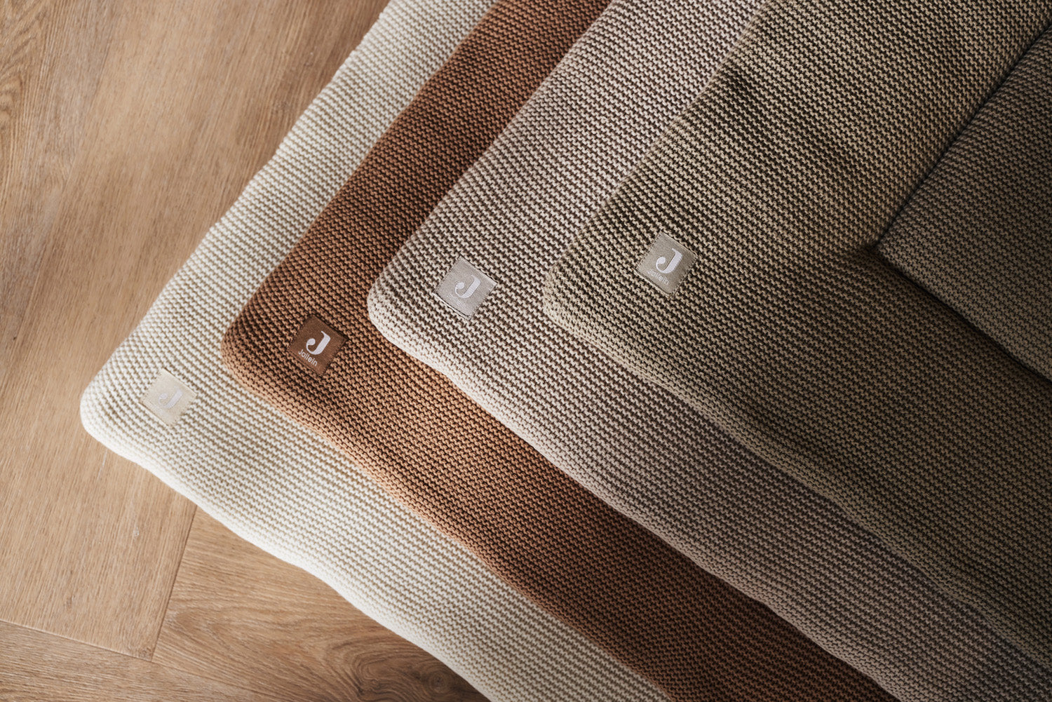 Diese schöne Krabbeldecke bietet deinem Baby einen weichen und bequemen Platz. Die Oberseite besteht aus einem schönen Strickstoff, die Unterseite aus wunderbar weichem Samt. Ideal für den Laufstall oder als Spieldecke auf dem Boden.