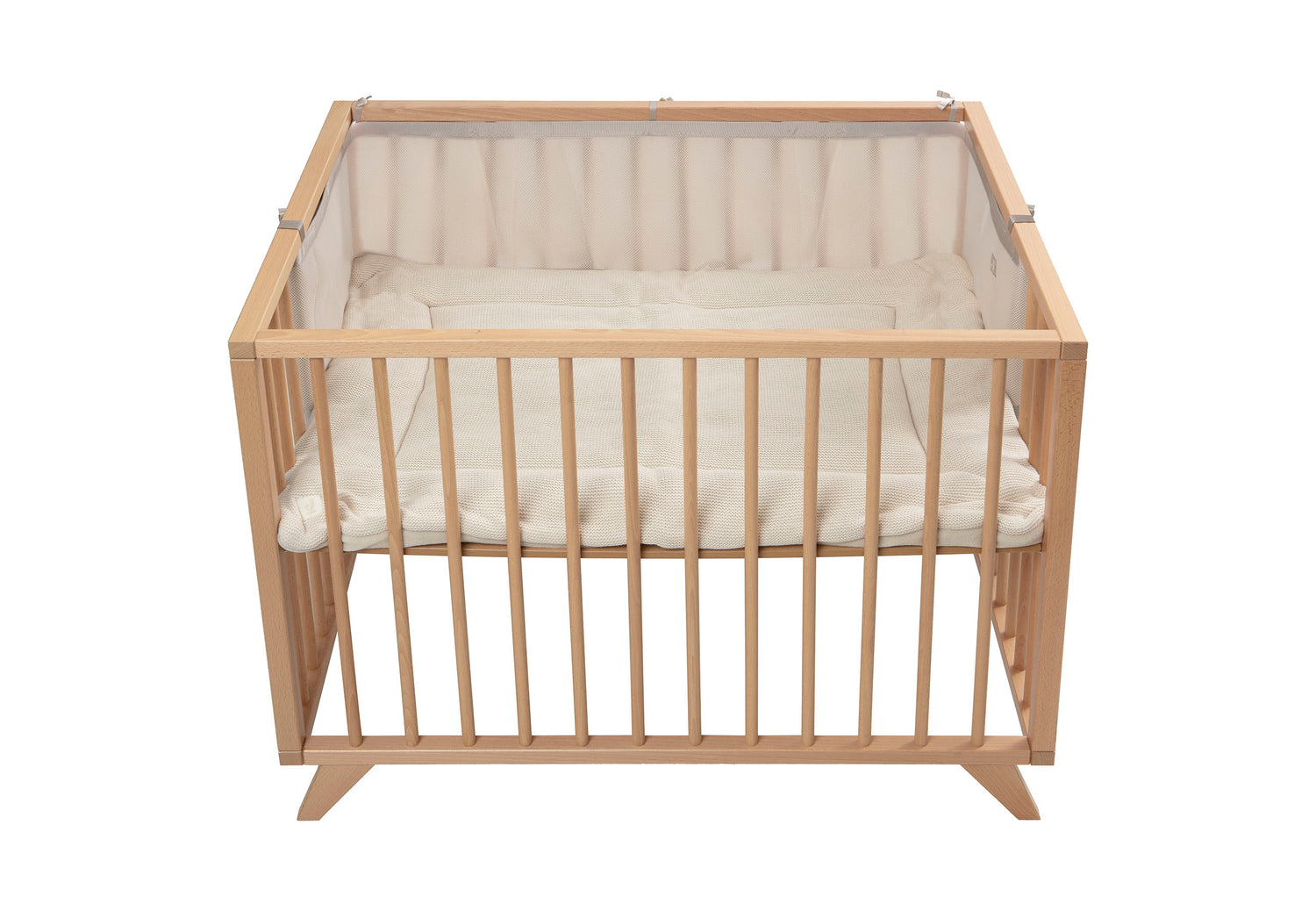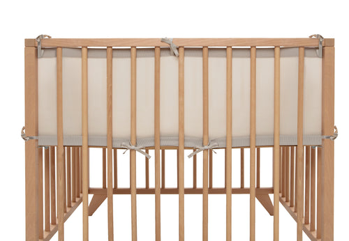 Mit dieser Umrandung wird das Laufgitter zu einem komfortablen Platz für Ihr Baby. Die weiche Umrandung schützt Köpfchen und Ärmchen vor Stößen. Durch den atmungsaktiven Mesh-Stoff kann die Luft gut zirkulieren. Mit Bändern und Klettverschlüssen an der Außenseite kann die Laufgitterumrandung sicher und straff an den Gitterstäben befestigt werden.