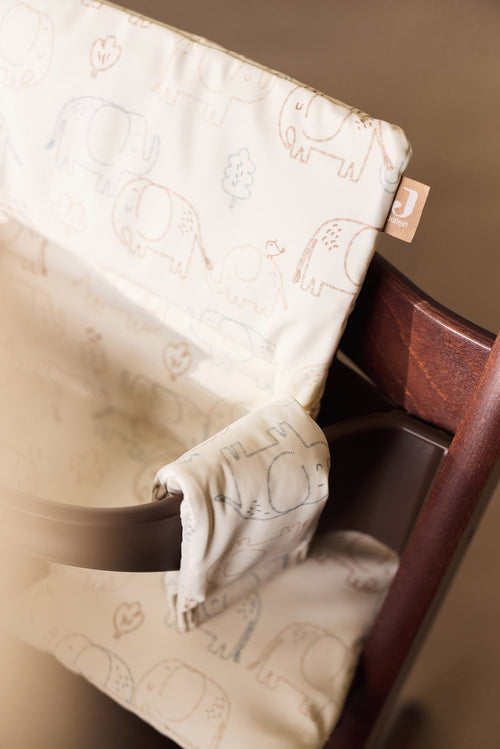 Dieser Sitzverkleinerer aus der Elephant Tales Kollektion sorgt für optimalen Komfort für dein Kind. Das neue Material mit flexibler Beschichtung ist besonders weich und angenehm gepolstert. Der Stoff ist leicht abwischbar. Der niedliche Elefanten-Print bringt gute Laune ins Kinderzimmer! Passt in alle mitwachsenden Hochstühle und ist lange einsetzbar.