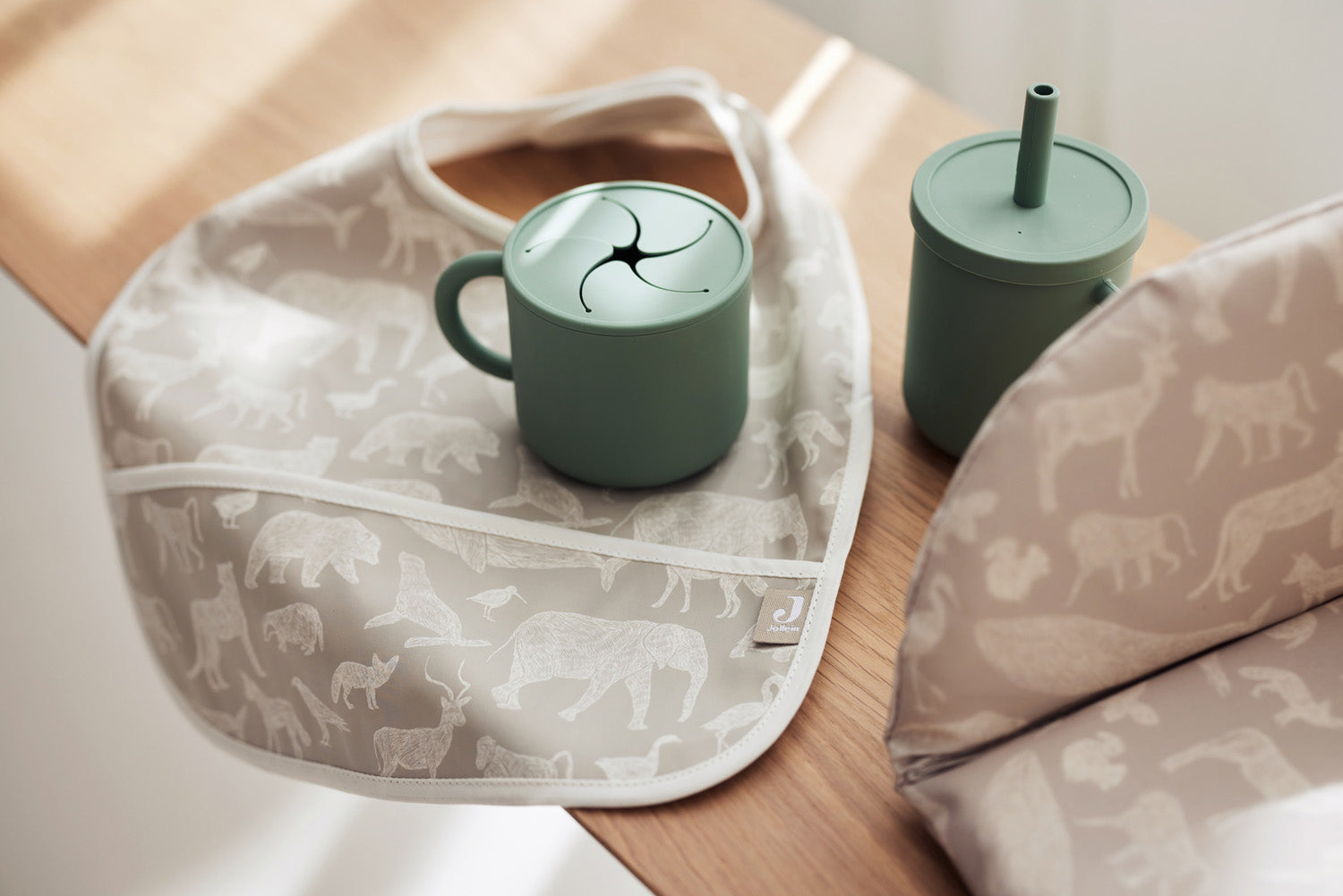 Go on an adventure with this cute bib with Animals print. These waterproof bibs can even handle the worst messes your adventurous baby or toddler makes. Easily attach the bib around your little one's neck with velcro, and remove the bib after use. Available in Nougat and Olive Green. Would you prefer a bib with sleeves, perfect for the worst mess makers? These are also available with the Animals print!