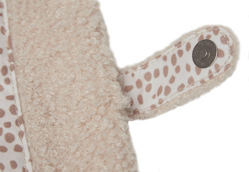 Make your growing book, notebook or nursery book even more fun with this practical cover of pettable Bouclé! The cover has the size A5 and the outside is made of soft Bouclé. The inside has a super cute polka dot print, and two reading ribbons. The cover is available in the colours Biscuit and Naturel. Which is your favourite?