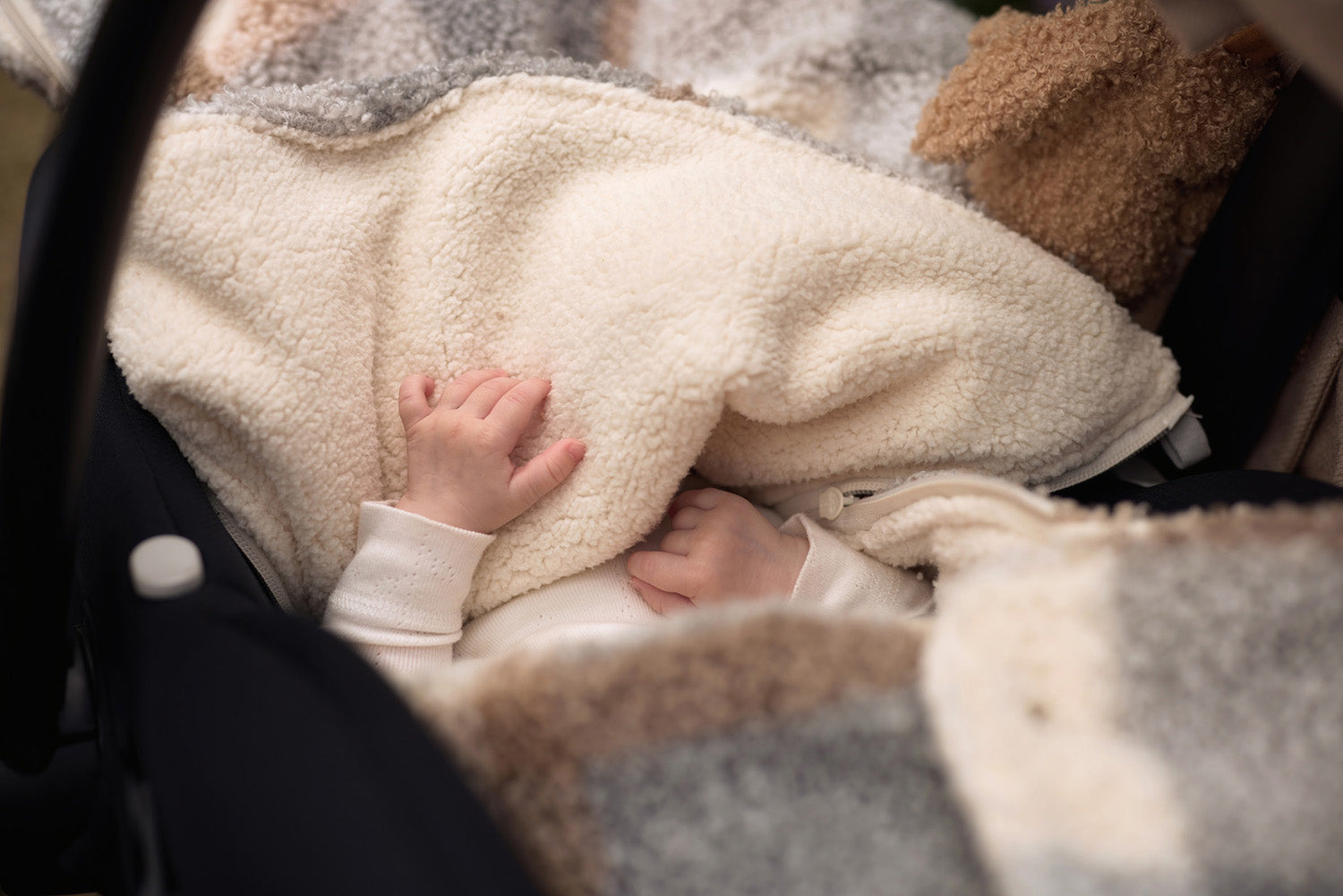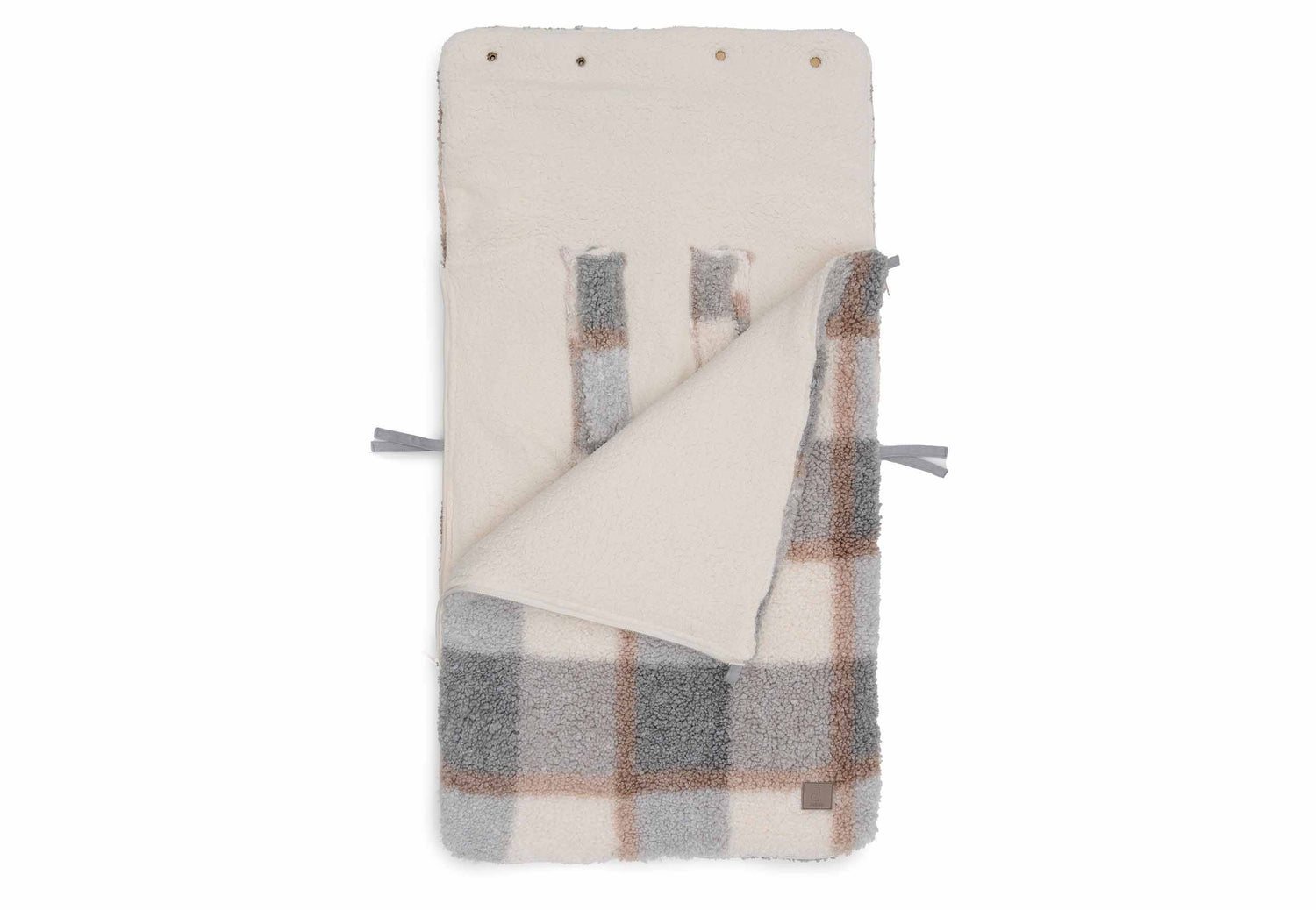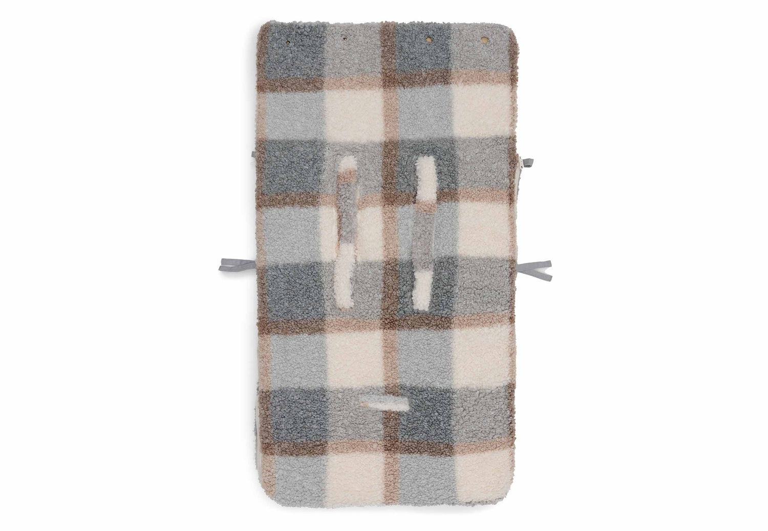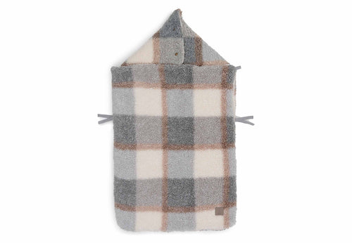 A footmuff is a true asset. You can easily place your baby in the footmuff by completely unzipping the bag first. You can also easily remove your baby from the car seat by unzipping the footmuff completely. In short: an incredibly practical comfort bag for your baby. The footmuff has openings in the back to make attaching belts very easy. It is a universal footmuff for the Maxi Cosi and any other brand of category 0 car seat with three or five-point harness. You can also use this comfort bag in the pram. So your baby will be wrapped up and warm for the walk in no time. The cooler Scandinavian colours of the Check Boucle print add a touch of sophistication to the overall look! A combination of the grey-blue colour and neutral tones creates an innovative look. This footmuff does not have a TOG rating, as it is designed to keep your little one warm on the go and not to be used as a sleeping bag.