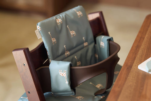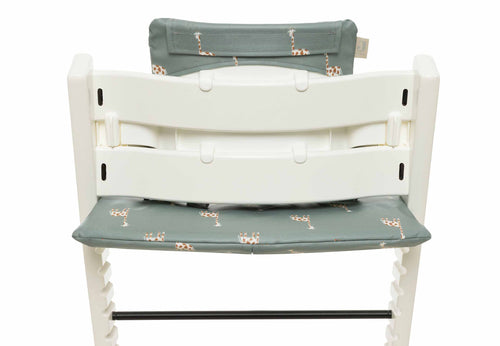 Do you like the fact that your child can now sit at the table with you? If you want your little one to eat comfortably meals with you, opt for this highchair cushion for growth. The highchair cushion for growth fits perfectly on highchairs for growth and has a great Jungle Jambo print with a sweet giraffe on an Ash Green coloured background!