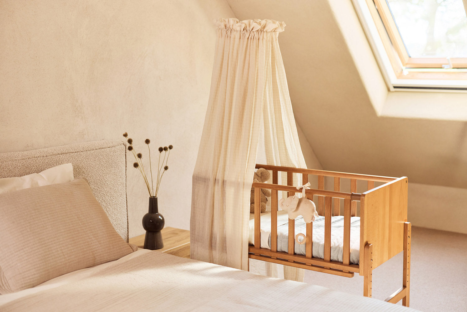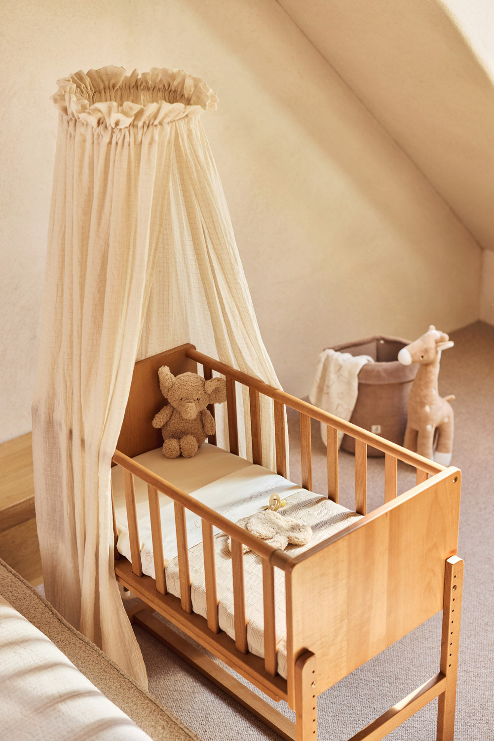 This sheet features a cute parade of elephants stretching along its full length. The elephants come in soft tones like Milky Coffee, Sea Green, and Biscuit, with an oatmeal background for a warm and calm look. Perfect for the nursery and a lovely match with the Elephant Tales collection!