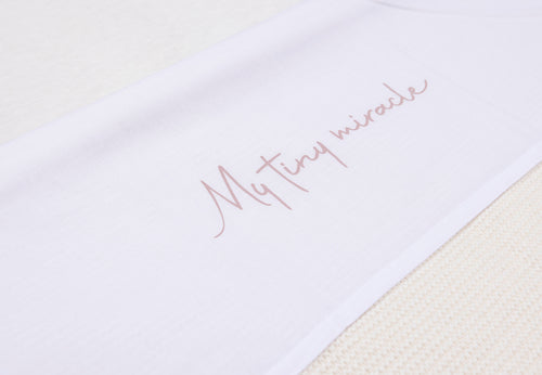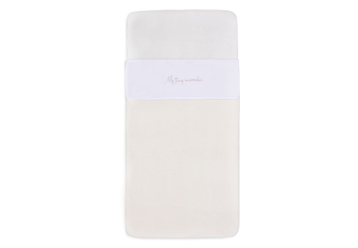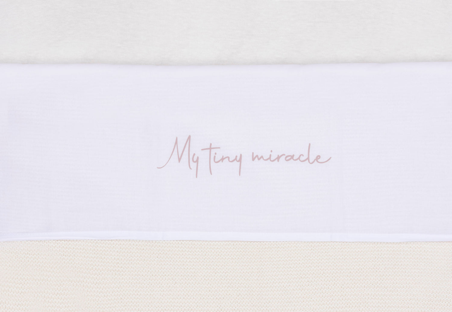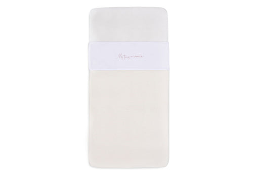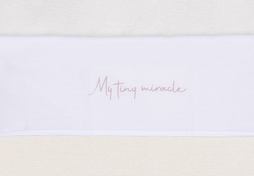 How cute is this little sheet? The sweet text 'my tiny miracle' is on the border of the sheet. With your little one sleeping under it, it will be even more adorable. You can combine this sheet with the Grain Knit blanket. Thanks to a sheet, you can tuck your little one in safely and tightly, and it will protect the blanket from stains, for example if your baby spits. Shop the sheet in Olive Green, Wild Rose or Funghi, or all of these colours. It's available for cot and cradle.