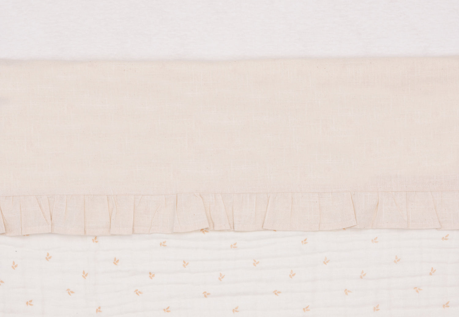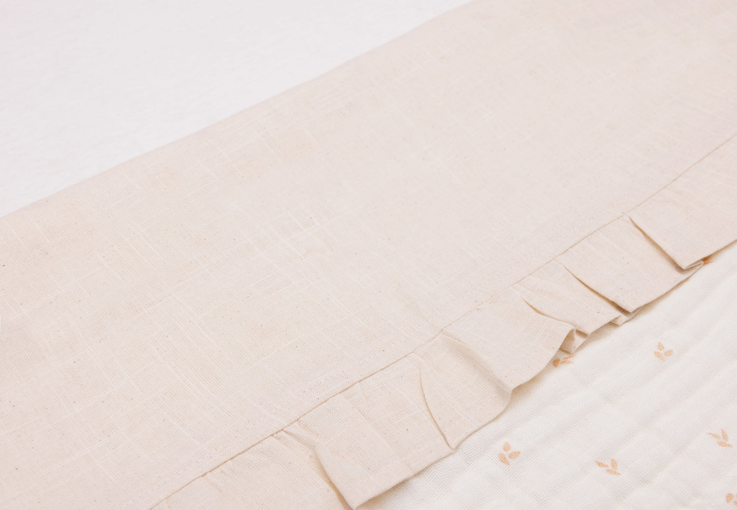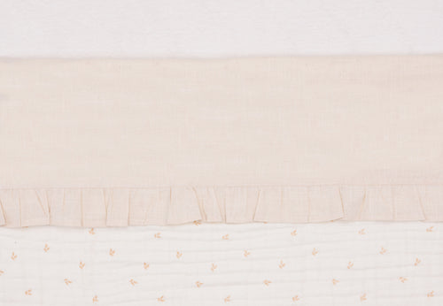 Give your little one's cradle or cot a stylish touch with our soft ruffled sheet. The ruffles add a hint of elegance, without diminishing the sheet's comfort. Perfect for your baby's cradle. Thanks to the light colour, the sheet is perfect for combinations. No inspiration? No problem! You can combine it with a Basic Knit or Miffy blanket.