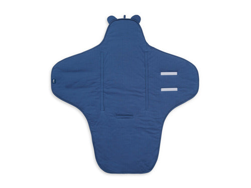 Nice basic wrap blanket from Jollein. This lovely padded wrap blanket is a real must-have for every baby. The wrap blanket is very nice to keep your little one warm, both at home and on the road. The wrap blanket has handy Velcro strips through which you can easily pull the belt of the car seat. After you have placed your little one in the wrap blanket, close it with the Velcro strips so they can no longer go anywhere. This gives your baby a sense of security and he will stay nice and warm. Is it chilly outside? The hoodie with cute ears offers a solution. The wrap blanket is lightly lined, making it nice and warm. The outside of the wrap blanket is made of 50% viscose and 50% cotton, the inside is made of 100% cotton and the filling is made of fibre fill polyester. The dimensions of the wrap blanket are 105x100 cm and it is available in nougat, pink (rosewood) and blue. The wrap blanket can be machine washed at a maximum temperature of 40 degrees, it cannot be put in the drier, but you can iron it. View the attached care label for detailed washing instructions.