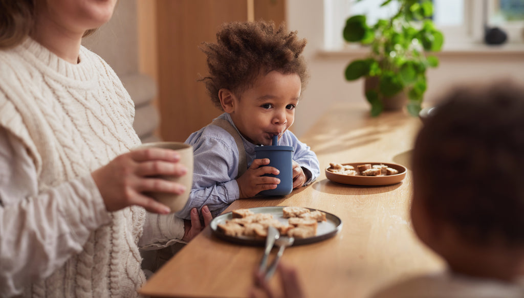 Les sets de vaisselle pour enfants de 4 pièces de Jollein se composent d'une assiette, d'un bol, d'une tasse et d'une cuillère. Le fond de l'assiette et du bol est doté d'une ventouse qui permet de les fixer sur la table ou lachaise haute. Ainsi, votre petit ne pourra plus jamais renverser son assiette. La base robuste du bol et de l'assiette est également parfaite pour apprendre à manger de manière autonome avec une cuillère.