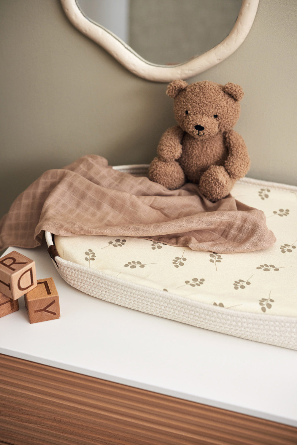 Flowers and twigs are totally on-trend, you see it everywhere. This Tiny Twig theme goes right along with this trend. The playful eucalyptus twigs in oatmeal color are illustrated on a background of wild pink or olive green. Sleeping bags, hydrophilic items and fitted sheets are available in this Tiny Twig theme.