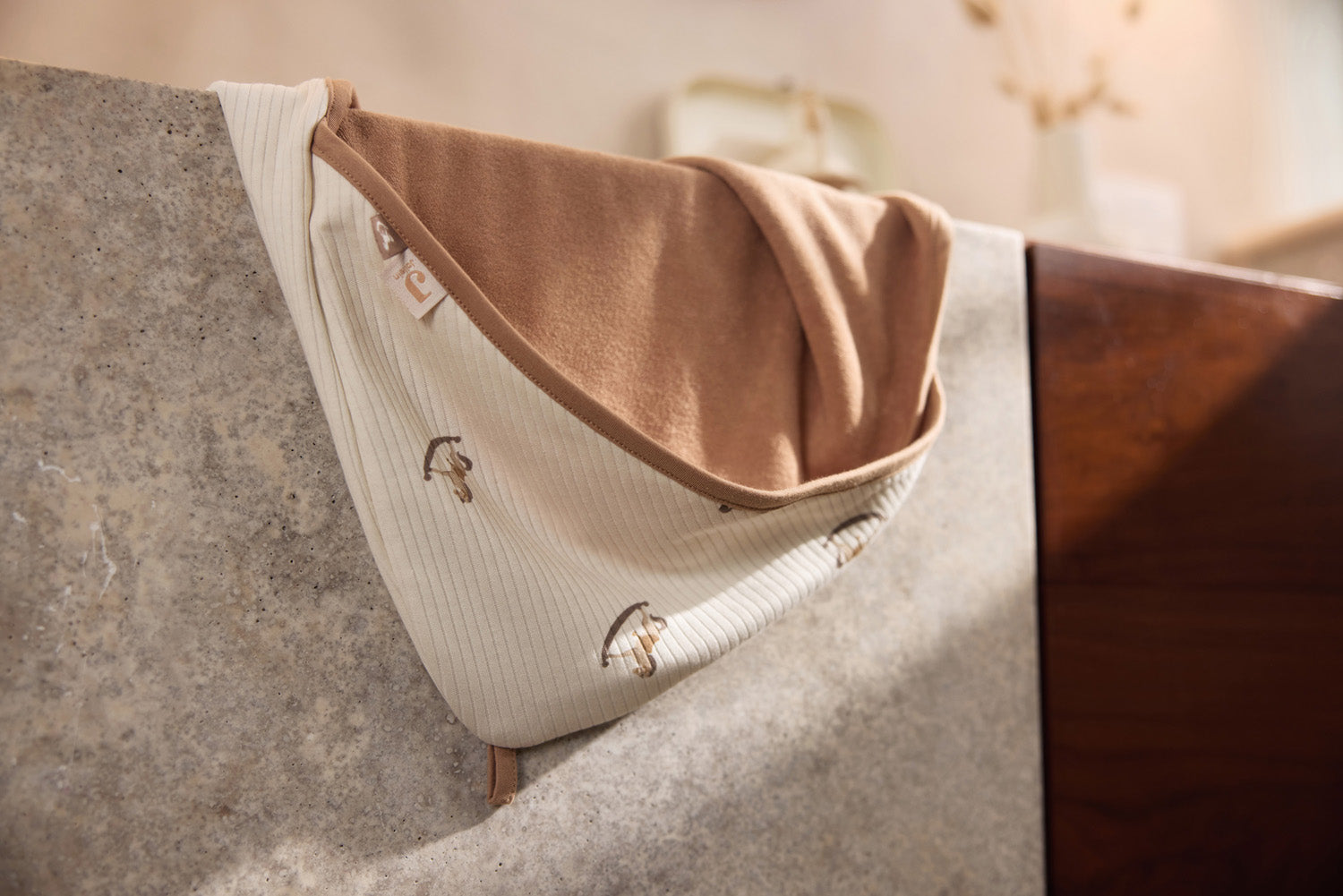 Wow, nous sommes complètement fans de cette jolie cape de bain ! Après le bain ou la natation, cette cape de bain est idéale. Tout à fait dans le style de l'imprimé Nostalgic Ride, vous envelopperez votre bébé bien chaudement dès qu'il sortira de l'eau. L'extérieur est orné d'un charmant imprimé de chevaux à bascule, de couleur Oatmeal et d'un tissu côtelé. L'intérieur est en éponge douce de couleur Biscuit. Le passepoil est également de couleur Biscuit et complète la cape de bain ! La capuche couvre la tête pour ne pas perdre de chaleur. Confortable ! L'éponge douce respecte la peau délicate de bébé et absorbe bien l'humidité, de sorte que le séchage se fait en un rien de temps. Après utilisation, la cape se suspend à la boucle.