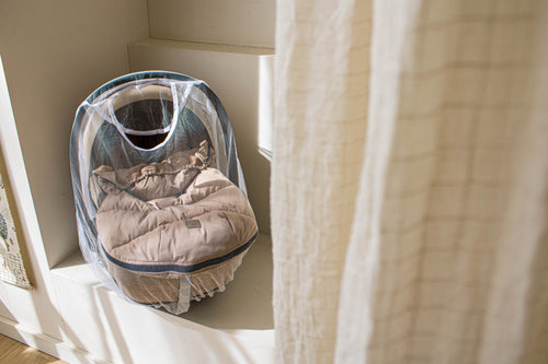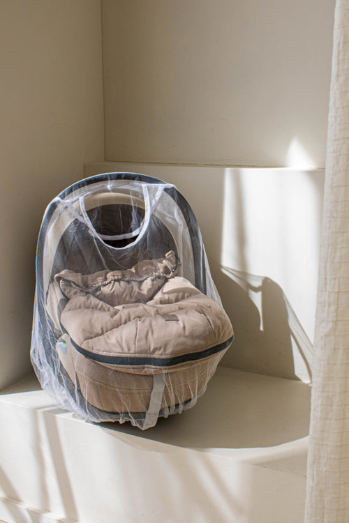 Moustiquaire pratique à placer sur un siège auto de 0 à 9 mois. Convient à tout siège auto standard et est fabriqué en 100 % polyester.