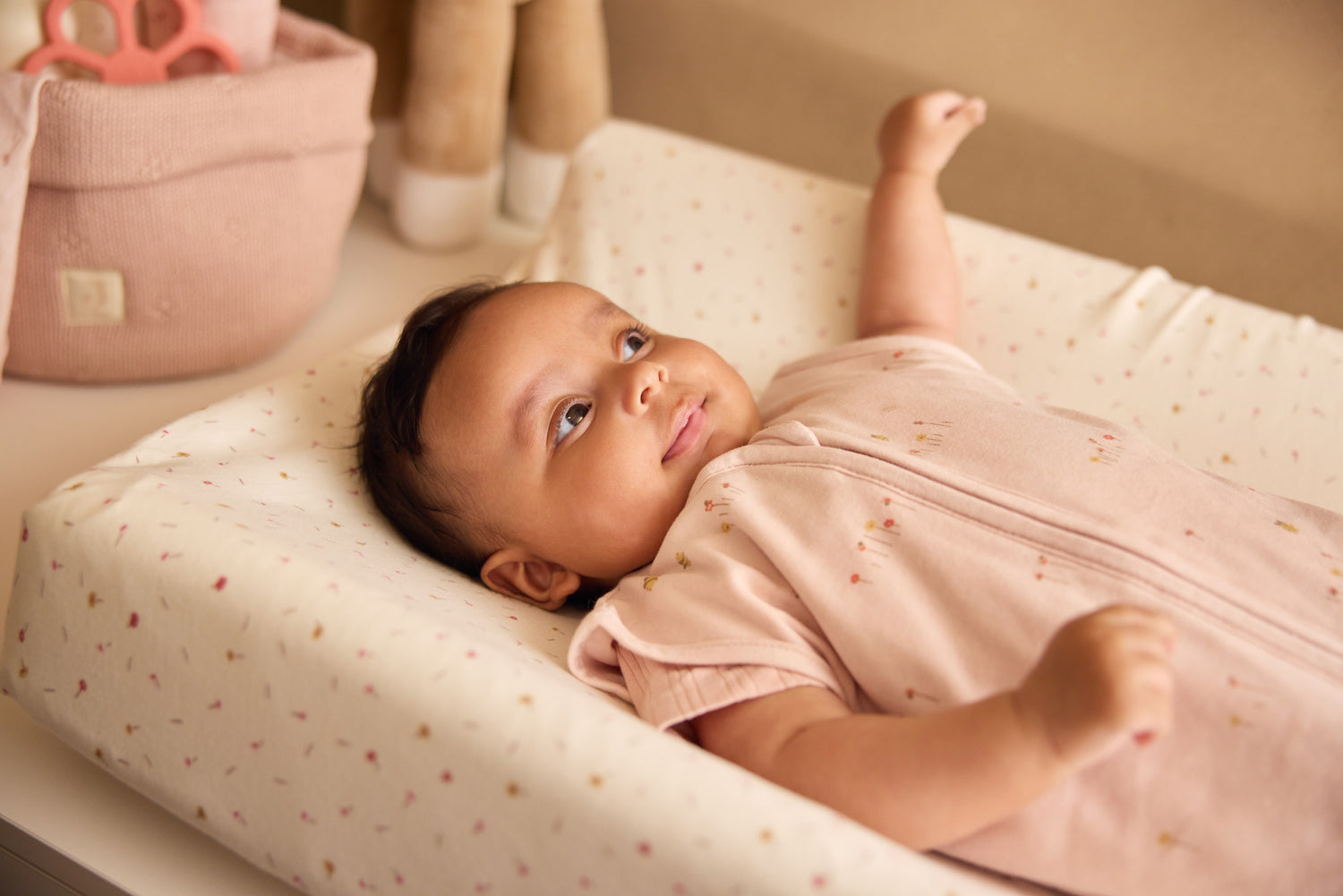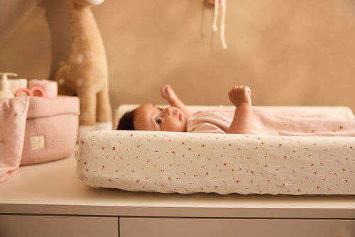 Deze aankleedkussenhoes voelt heerlijk zacht aan en maakt ieder moment met je kleintje extra fijn. Dankzij de elastieken rand blijft de hoes perfect op zijn plek zitten. De zachte stof en lieve uitstraling toveren de commode om tot een warm plekje vol fijne momentjes met je kleintje.