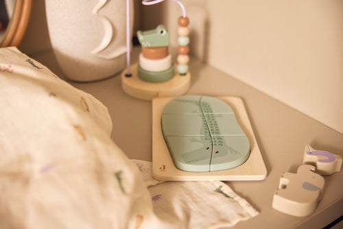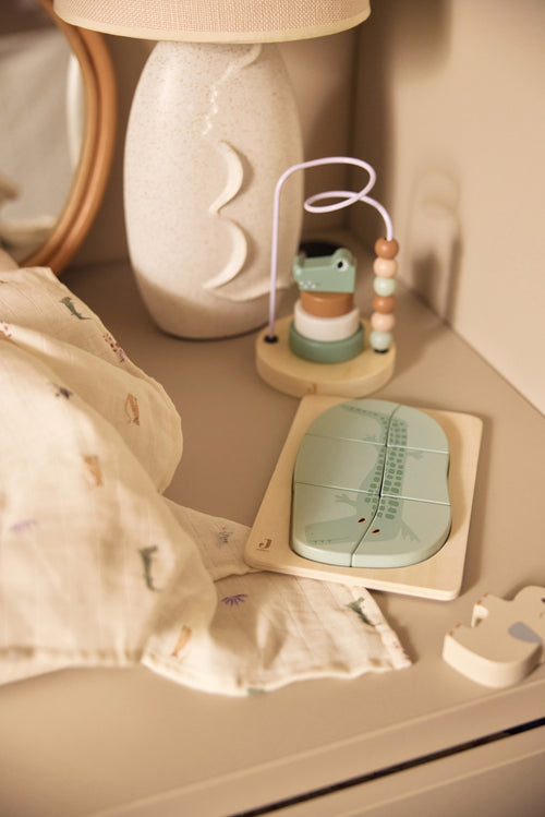Maak kennis met onze geweldige stapeltoren, een absolute must-have voor kleine ontdekkingsreizigers! De cheetah bestaande uit 4 vrolijk gekleurde blokjes, zorgt deze toren voor eindeloos stapelplezier. De 6 kralen kunnen langs de spiraal bewegen, wat niet alleen zorgt voor urenlang vermaak, maar ook de fijne motoriek van jouw kleintje stimuleert. De trendy kleuren in lavendel, caramel, ivory en ash green maken deze stapeltoren niet alleen mega schattig. Je maakt ook een verantwoorde keuze met FSC 100% gecertificeerd hout. Spelen maar!