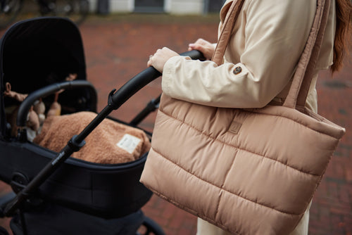 De perfecte puffed mom bag! Deze tas is ideaal als je op pad gaat met jouw kleintje. Natuurlijk kun je de tas ook gebruiken voor jezelf, voor het sporten of als schooltas. De tas is gemaakt van 100% gerecycled polyester. De binnenkant heeft aan de binnenkant een schattig stippenprintje. Daarnaast heb je in de binnenkant nog 2 handige opbergvakjes en wordt er standaard een verschoonmatje bijgeleverd. De tas sluit met een knoopje en er zit een rits in het binnenvakje. De tas heeft extra lange hengsels zodat je deze niet alleen op je schouder kan dragen, maar ook cross-body of om de kinderwagen. Verkrijgbaar in stijlvolle, natuurlijke tinten. Tip: Combineer de luiertas met onze handige tassenhaken voor nog meer gemak onderweg!