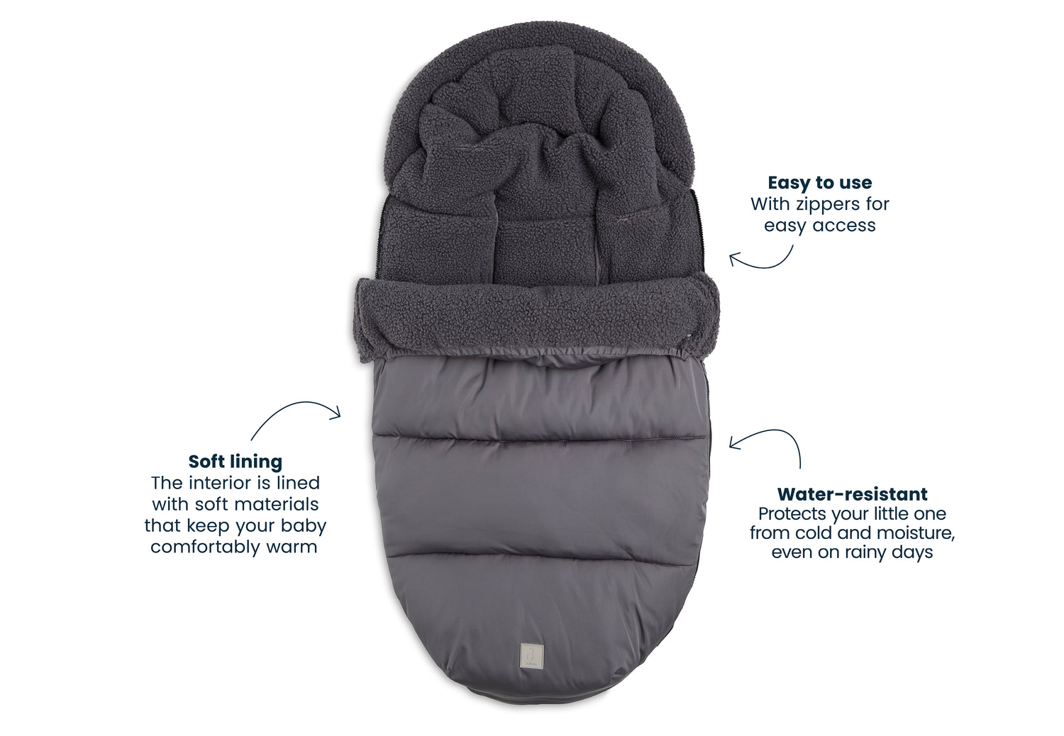 Houd jouw kleintje lekker warm met de voetenzak voor de buggy/wandelwagen van Jollein. Een echte musthave voor de koude winterdagen. Deze voetenzak heeft openingen voor een 3 en 5 punts gordel, zodat de gordels van de buggy of wandelwagen er doorheen kunnen. Je kunt de voetenzak openen met de rits, welke beide kanten op te gebruiken is zodat je jouw kleintje gemakkelijk in en uit kan halen. Aan de achterkant van de voetenzak zit een handige kap zodat je deze om de hoofdsteun van de buggy kan vouwen. Op deze manier blijft de voetenzak goed zitten. De voetenzak is waterafstotend zodat je kindje lekker warm en droog zit! Voor welke kleur ga jij? Deze voetenzak heeft geen TOG-waarde, omdat de voetenzak bedoeld is om je kleintje warm te houden onderweg en niet als slaapzak.