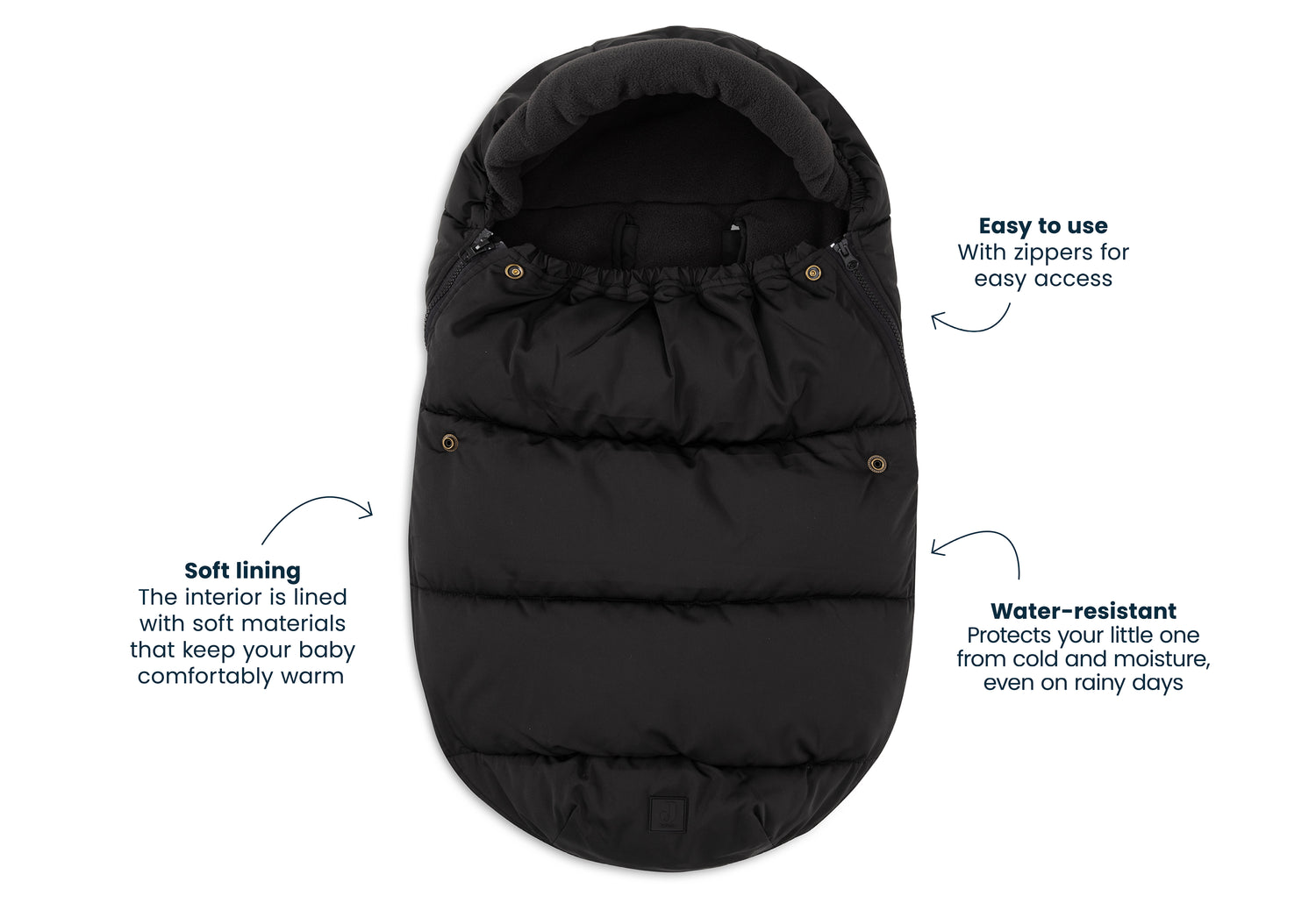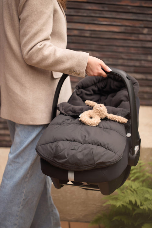 Een voetenzak is echt een uitkomst. Je baby leg je gemakkelijk in de voetenzak door de zak eerst helemaal open te ritsen. Ook haal je jouw baby makkelijk uit de autostoel door de voetenzak helemaal open te ritsen. Kortom: een super handige comfortbag voor je baby. De voetenzak is voorzien van openingen in de achterkant om het vastmaken van de gordels extra makkelijk te maken. Het is een universele voetenzak voor de Maxi Cosi en elk ander merk categorie 0 autostoeltje met drie of vijfpuntsgordel. Je kunt deze comfortbag ook in de kinderwagen gebruiken. Zo is je baby in een mum warm ingepakt voor de wandeling. Deze voetenzak in Puffed zwart voetenzak is helemaal on-trend en past bij onze andere items uit de Puffed collectie. Denk aan etui's, luiertassen en rugzakjes voor je mini(s)! Mega cute. Deze voetenzak heeft geen TOG-waarde, omdat de voetenzak bedoeld is om je kleintje warm te houden onderweg en niet als slaapzak.